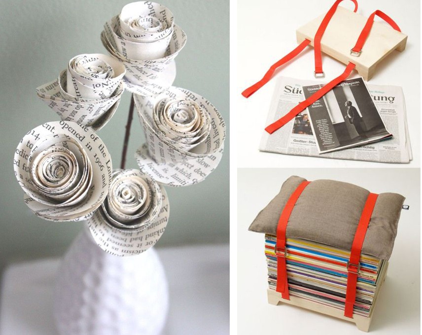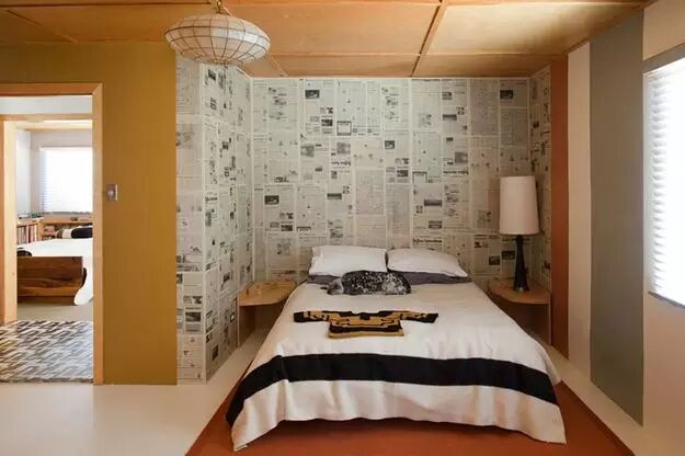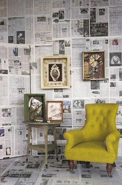 报纸铺贴装饰墙?把报纸胡乱团起来放在坐凳里……一个别具特色的环保创意就这样诞生了。