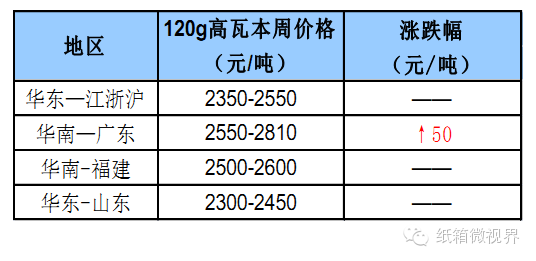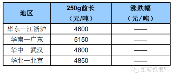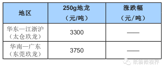 上周,箱板瓦楞纸交投稳定。江浙沪多数纸厂报价未变,实单实谈为主,富阳地区因环保问题纸厂整合故出现零星低价货源。山东纸厂多稳价出货,临沂地区因环保纸厂开工略降,个别纸厂提涨瓦纸价格30-50元/吨。广东地区部分纸厂继续提涨价格,成交稳定。福建瓦楞纸厂多表示目前订单量可观,暂无库存压力;箱板纸厂出货一般,价格暂稳。