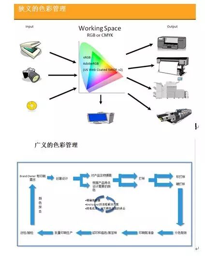 印刷色彩管理是一个被大家提到很多的一个概念,那到底什么是印刷的色彩管理,我来谈谈我自己的看法。个人认为色彩管理分狭义的色彩管理和广义的色彩管理两个概念。狭义的色彩管理是:为了保证颜色在显示,输入,输出的整个过程中颜色始终保证一致,也就是常说的“所见即所得”;而广义的色彩管理是:除了狭义的色彩管理的内容,还包括整个印刷颜色控制相关的数据化和标准化管理。