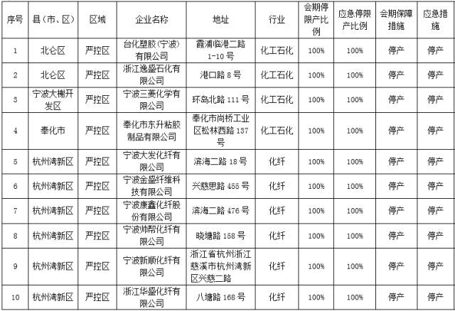 作为停工范围中的严控区,宁波市公布了关于G20峰会环境质量保障管控企业清单(第一批),共有20家石化和化纤企业。具体名单如下: