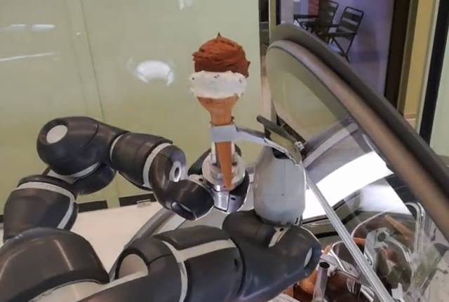 YuMi灵巧的双臂能够轻松地挖取冰激凌