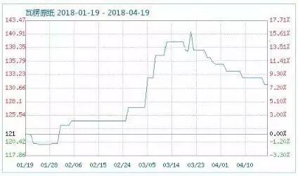 瓦楞原纸价格指数(截止2018年4月18日)